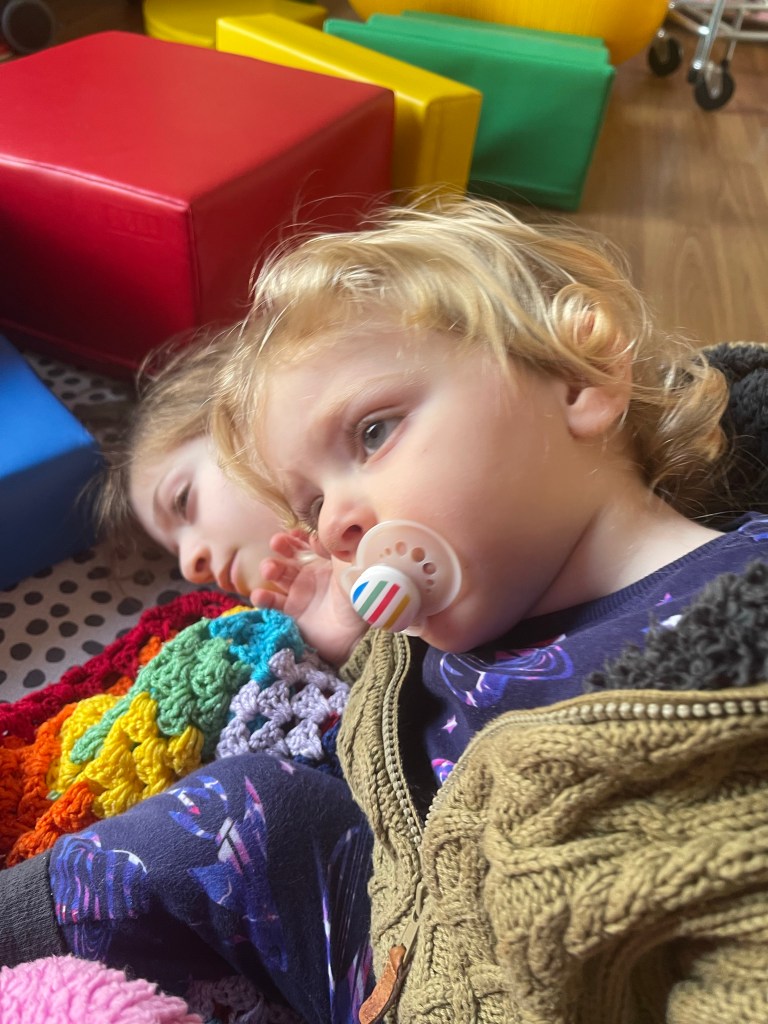 We were laying on the floor, rolling around being silly together. My little one year old boy. My healing baby.
